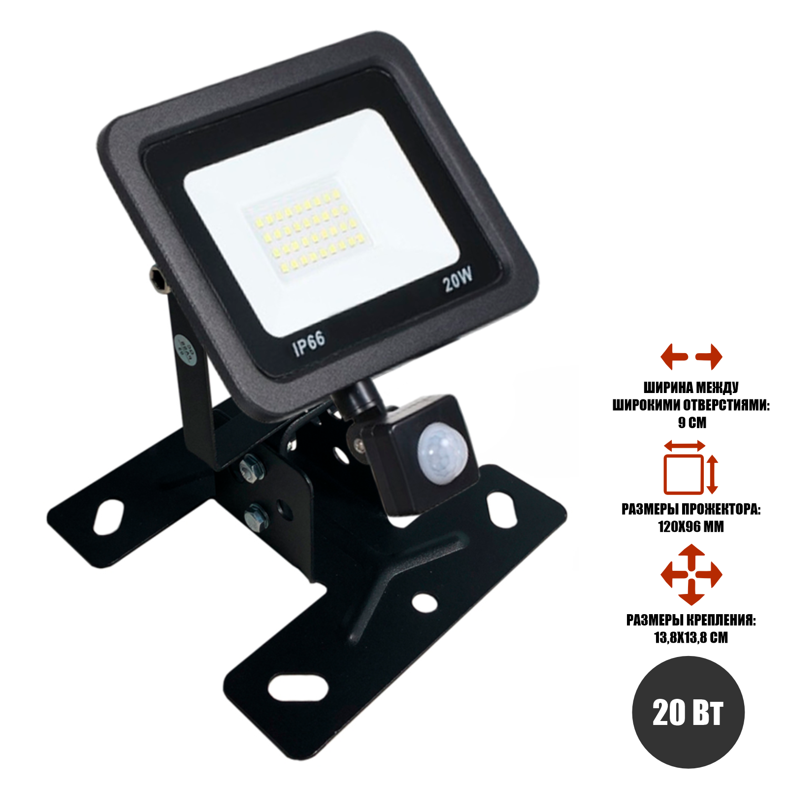 Прожектор 20 Вт с датчиком движения на настенно-потолочном креплении FK-PRJ информация: