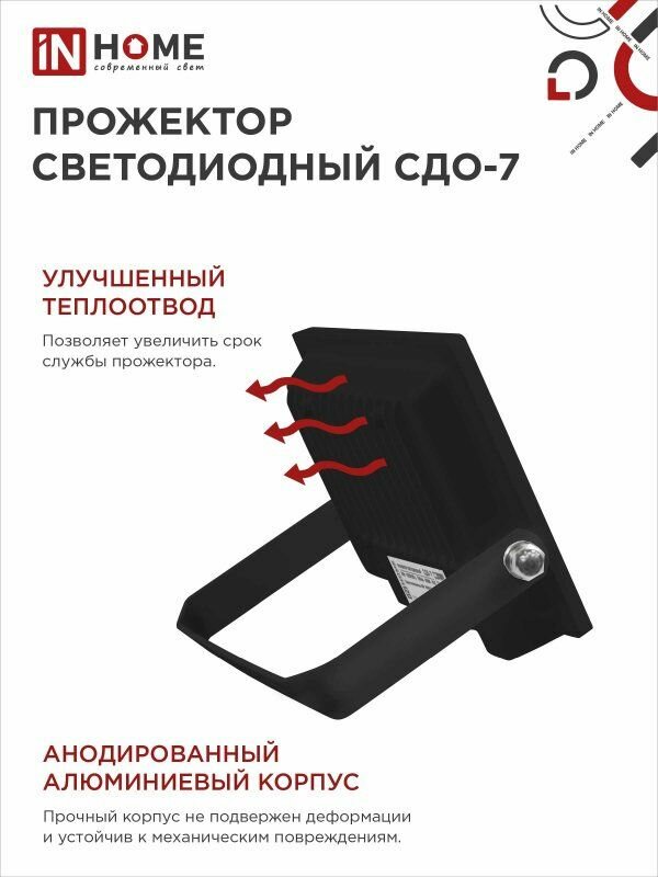 Прожектор светодиодный СДО-7 20Вт 6500К IP65 1800лм 230В черн, IN HOME 4690612034614 информация: