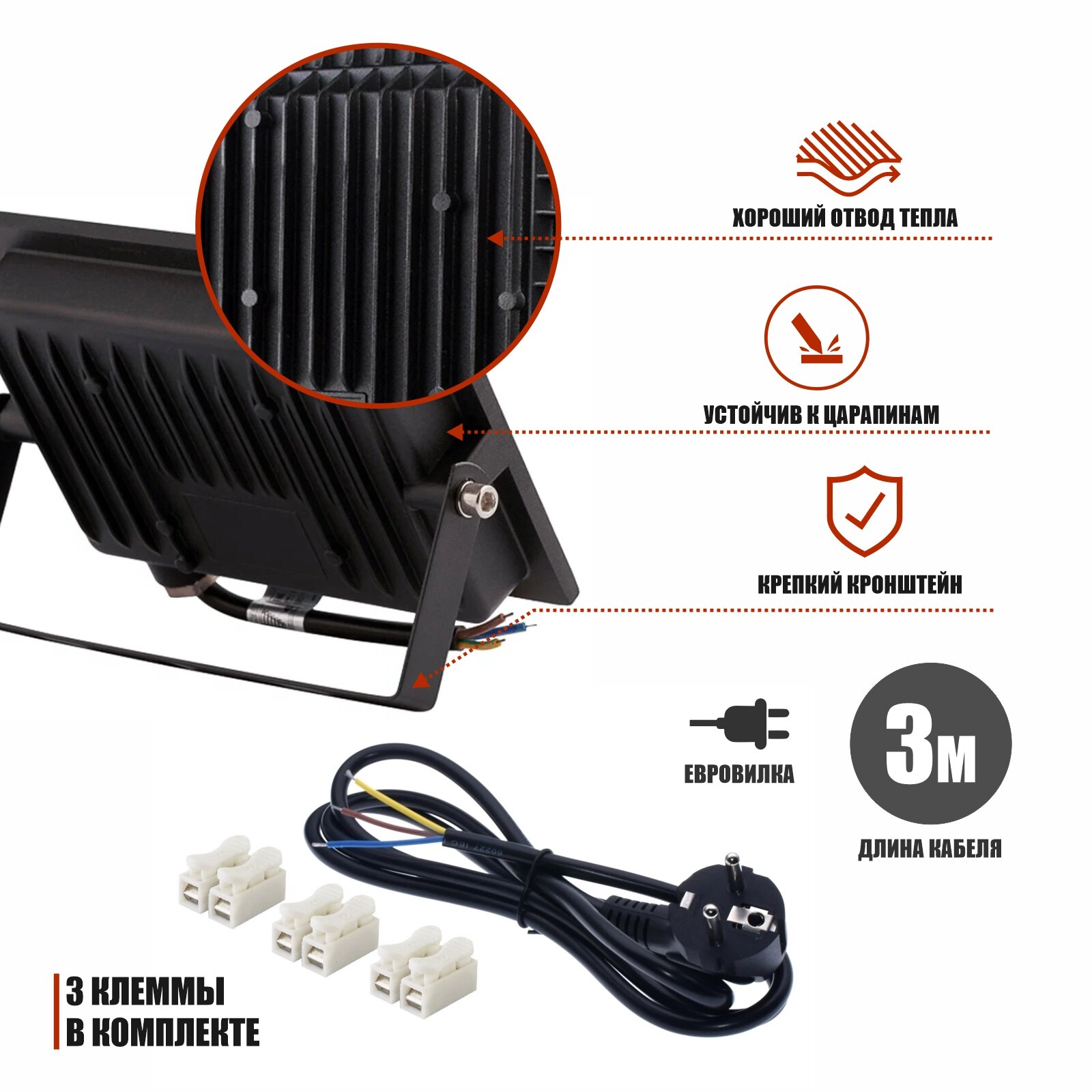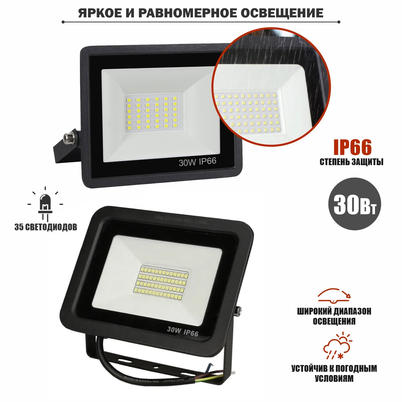 Отзывы на Светодиодный прожектор 30 Вт переносной на креплении FK-Pr2 с кабелем 3 метра и клеммами