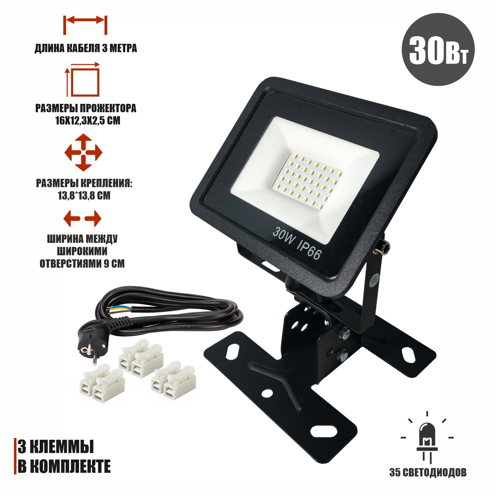 Светодиодный прожектор 30 Вт переносной на креплении FK-Pr2 с кабелем 3 метра и клеммами информация: