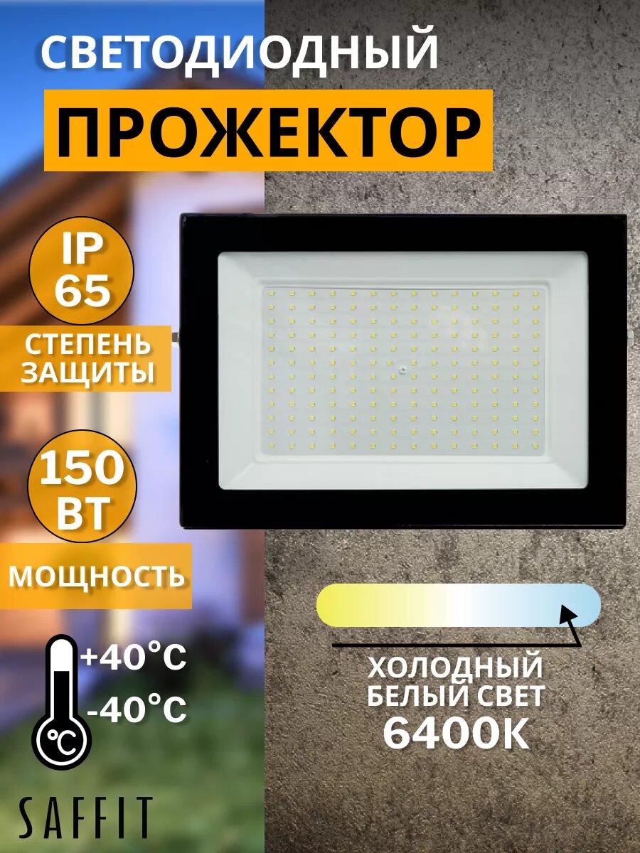 Светодиодный прожектор SAFFIT SFL90-150, 150 Вт, IP65, уличный, 6400К, черный информация: