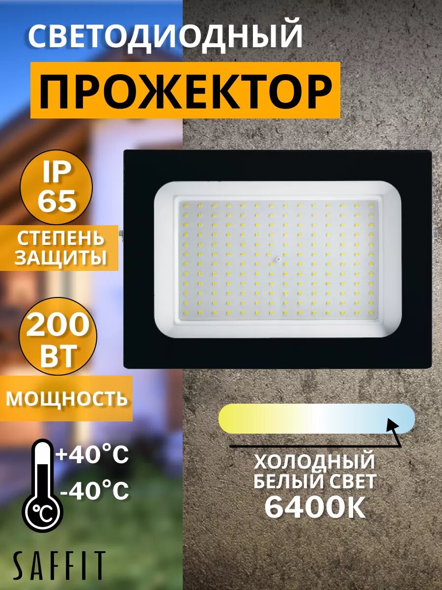 Светодиодный прожектор SAFFIT SFL90-200, 200 Вт, IP65, уличный, 6400К, черный информация: