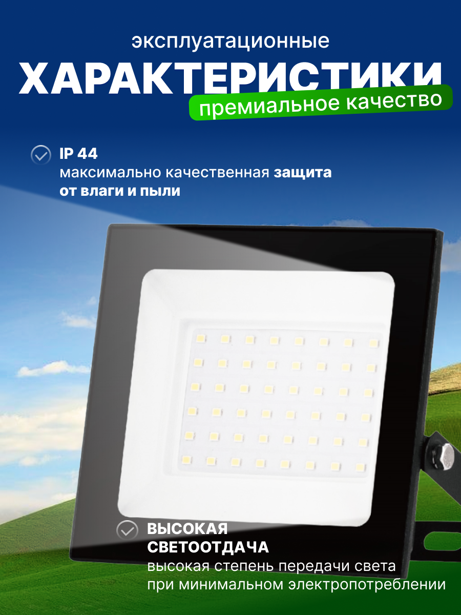 Прожектор светодиодный уличный KRONUS 50Вт 6500K IP65 220V 666 ₽