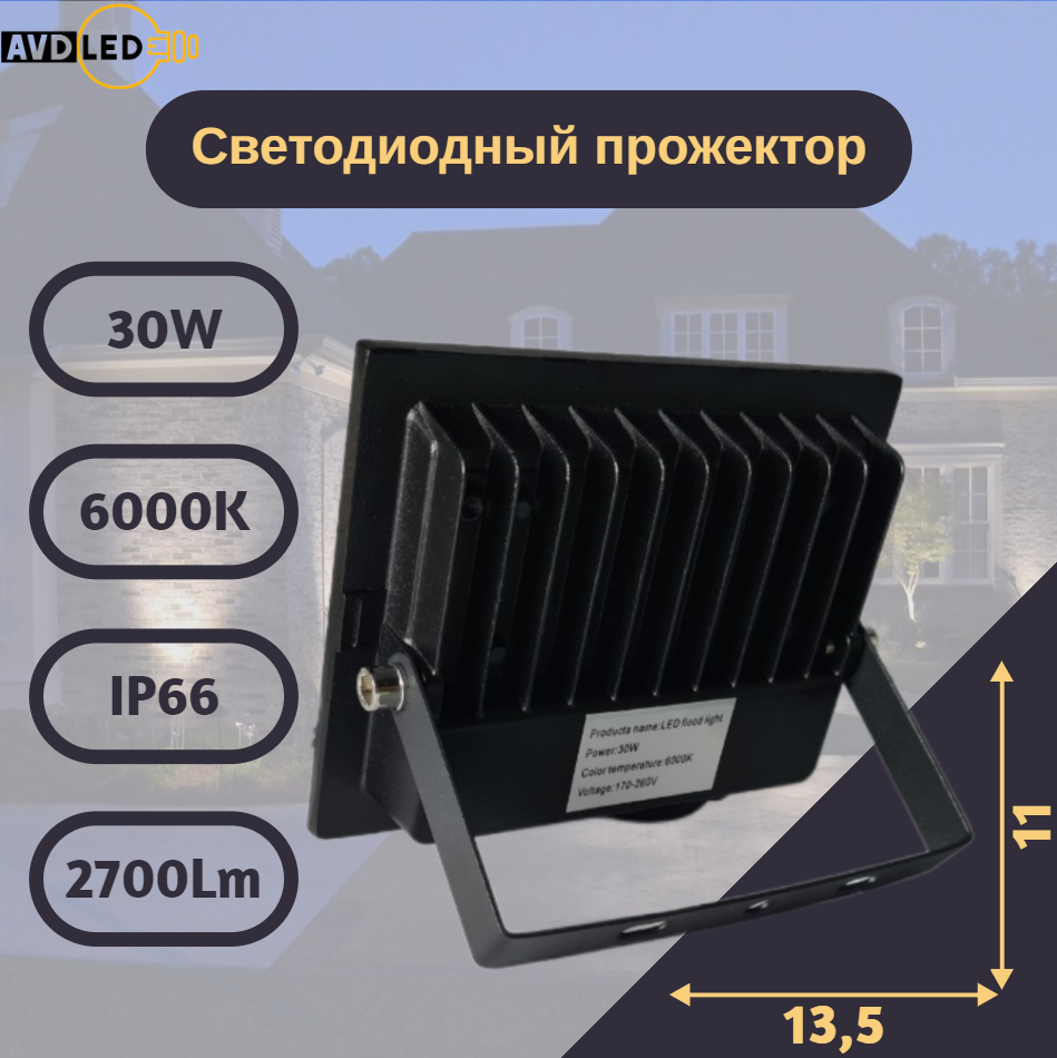Светодиодный уличный прожектор "Mini" 30вт Ip66 AVD-LED информация: