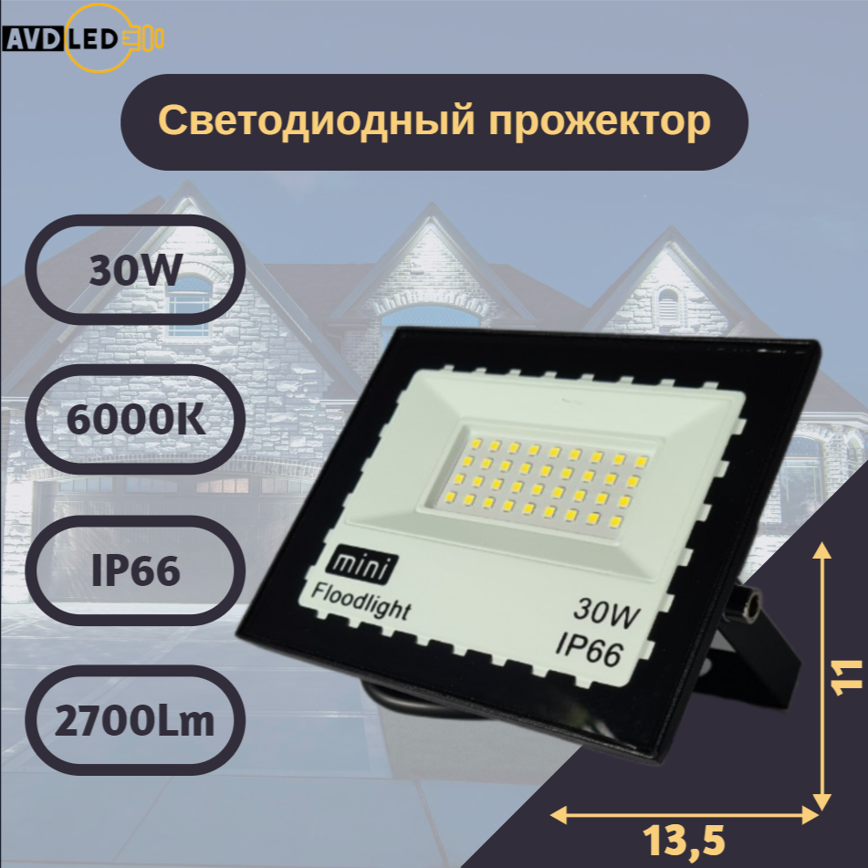 10 цен на Светодиодный уличный прожектор "Mini" 30вт Ip66 AVD-LED