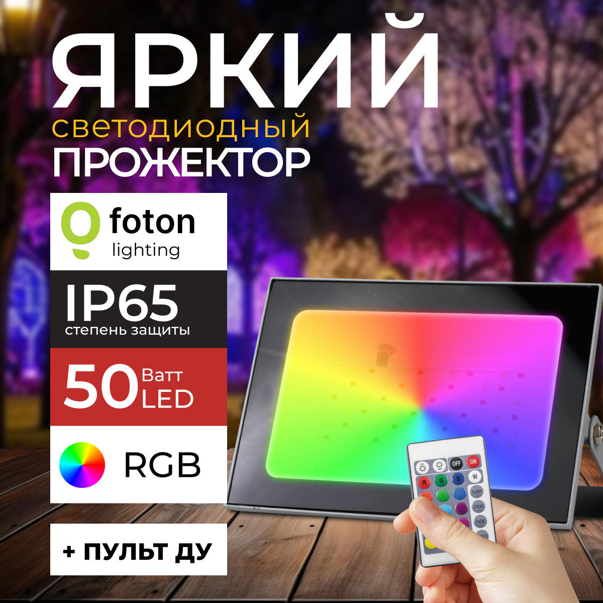 Отзывы на Прожектор светодиодный Фотон мультиколор 50 Вт FL-LED Light-PAD RGB, 50W, цвет корпуса серый, пульт ДУ, Foton Lihgting