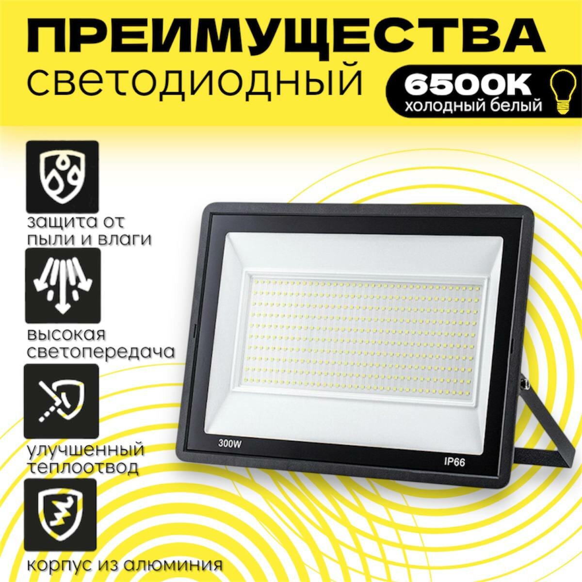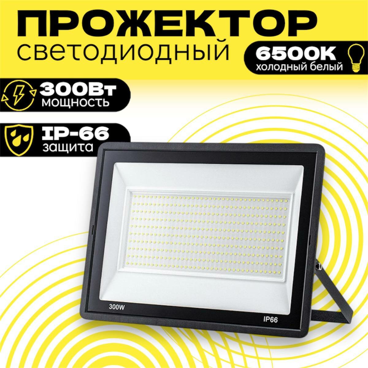 Прожектор светодиодный металлический уличный 300Вт/6500К/IP66 информация:
