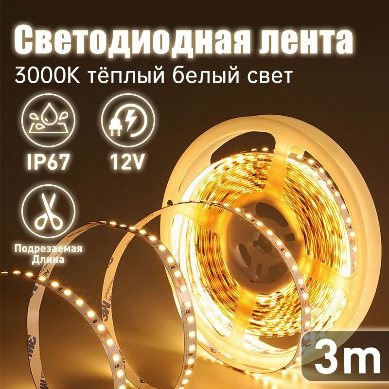 Отзывы на Светодиодная лента 3м COB (320 LED) 12V 10W/м Теплый белый 3000K