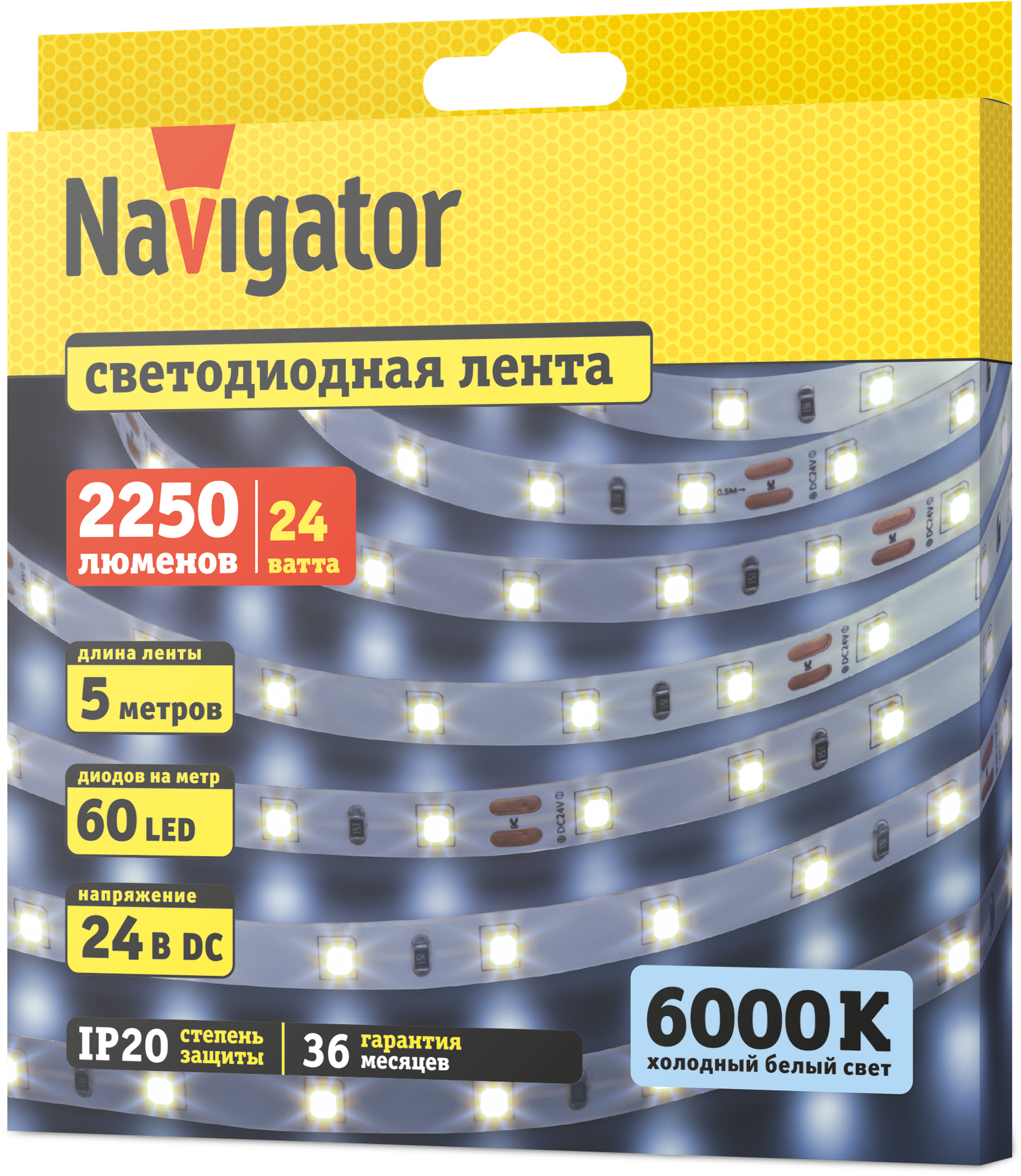 Светодиодная лента Navigator 95 295 NLS-2835CW60-4.8-IP20, 5м, 24Вт 6000К информация: