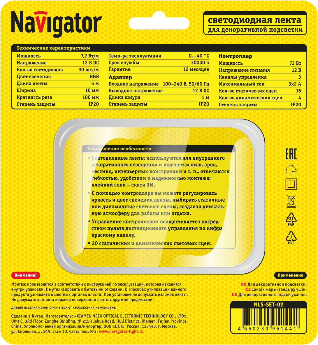 Светодиодная лента Navigator 95 144 NLS-SET-02, с адаптером и пультом ДУ информация:
