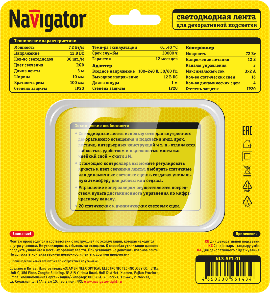 Светодиодная лента Navigator 95 143 NLS-SET-01 с адаптером и пультом ДУ информация: