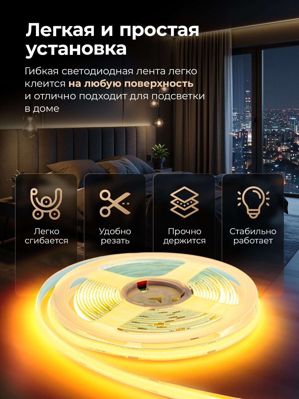 Отзывы на Светодиодная лента (комплект) СОВ Standard "Eleganz 12В" на самоклеящейся основе, 8 Вт , 310 LED, IP33 Теплый белый свет. Лента 10м (2шт. по 5 метров)