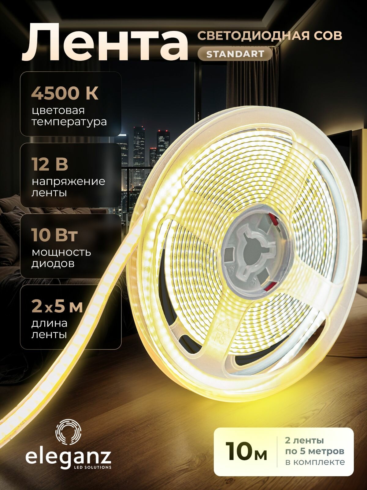 10 цен на Светодиодная лента (комплект) СОВ Standard "Eleganz 12В" на самоклеящейся основе, 10 Вт , 252 LED, IP33 Нейтральный белый свет. Лента 10м (2шт. по 5 метров)