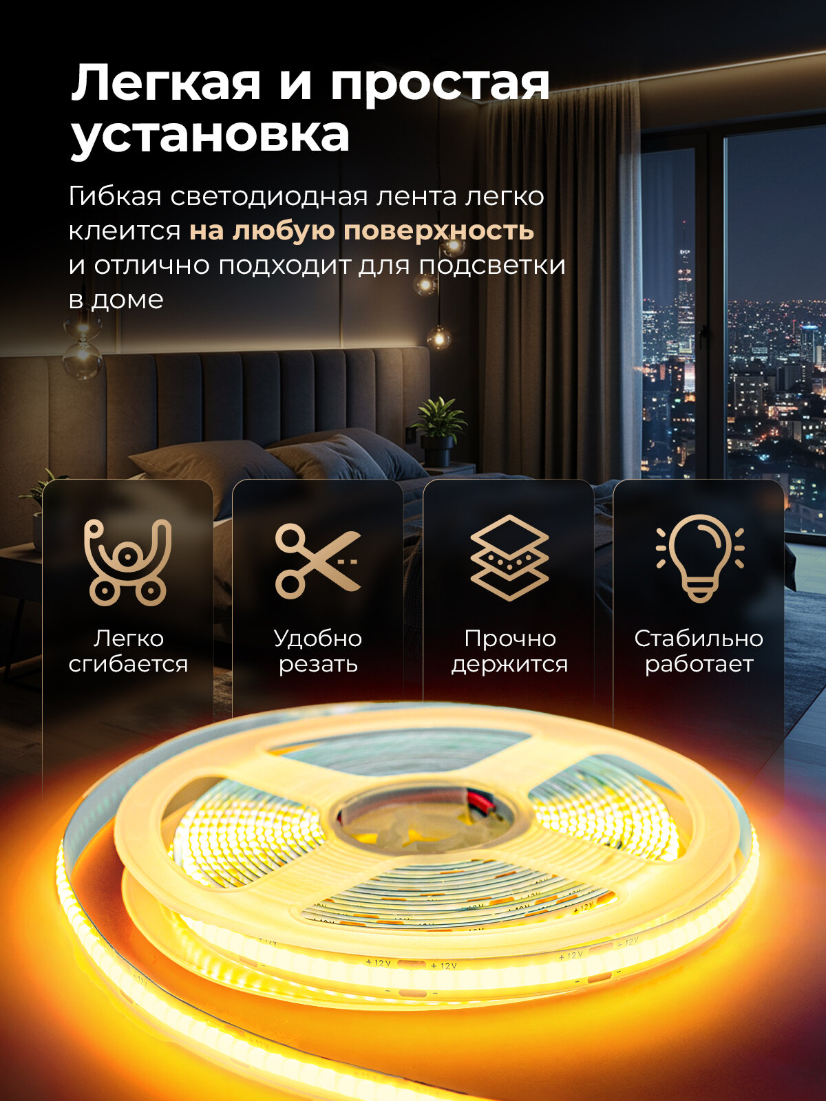 Отзывы на Светодиодная лента (комплект) СОВ Standard "Eleganz 12В" на самоклеящейся основе, 10 Вт , 252 LED, IP33 Теплый белый свет. Лента 10м (2шт. по 5 метров)
