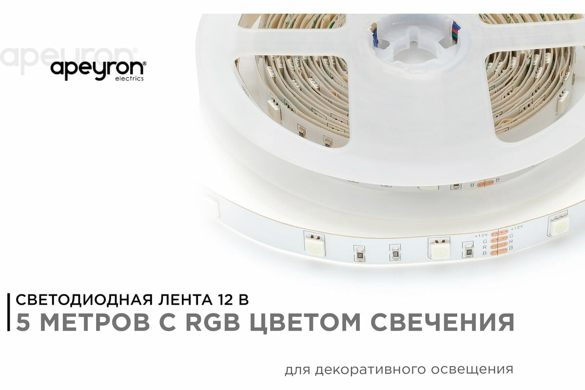 Светодиодная лента APEYRON в блистере 12В, СТ, 7,2Вт/м, smd5050 RGB. 38BL информация: