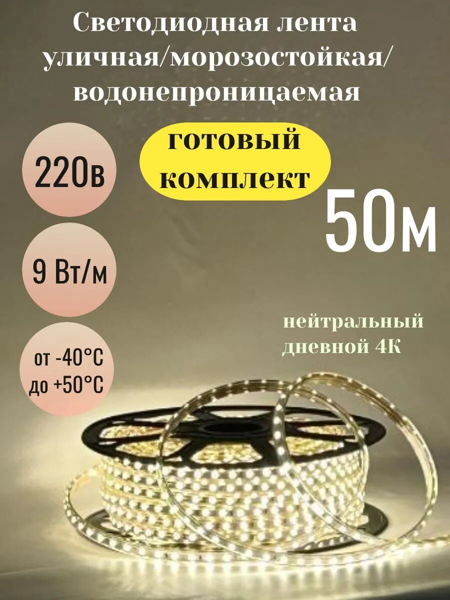 Светодиодная лента водостойкая комплект 50м 9Вт дневной свет информация:
