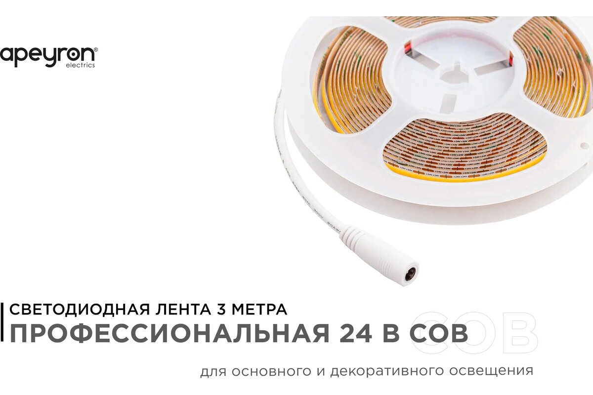 10 цен на Общее освещение светодиодной лентой Apeyron 3м, 24В, 14Вт/м, COB, 512д/м, IP20, 1200Лм/м, 3000К. / 198ОО