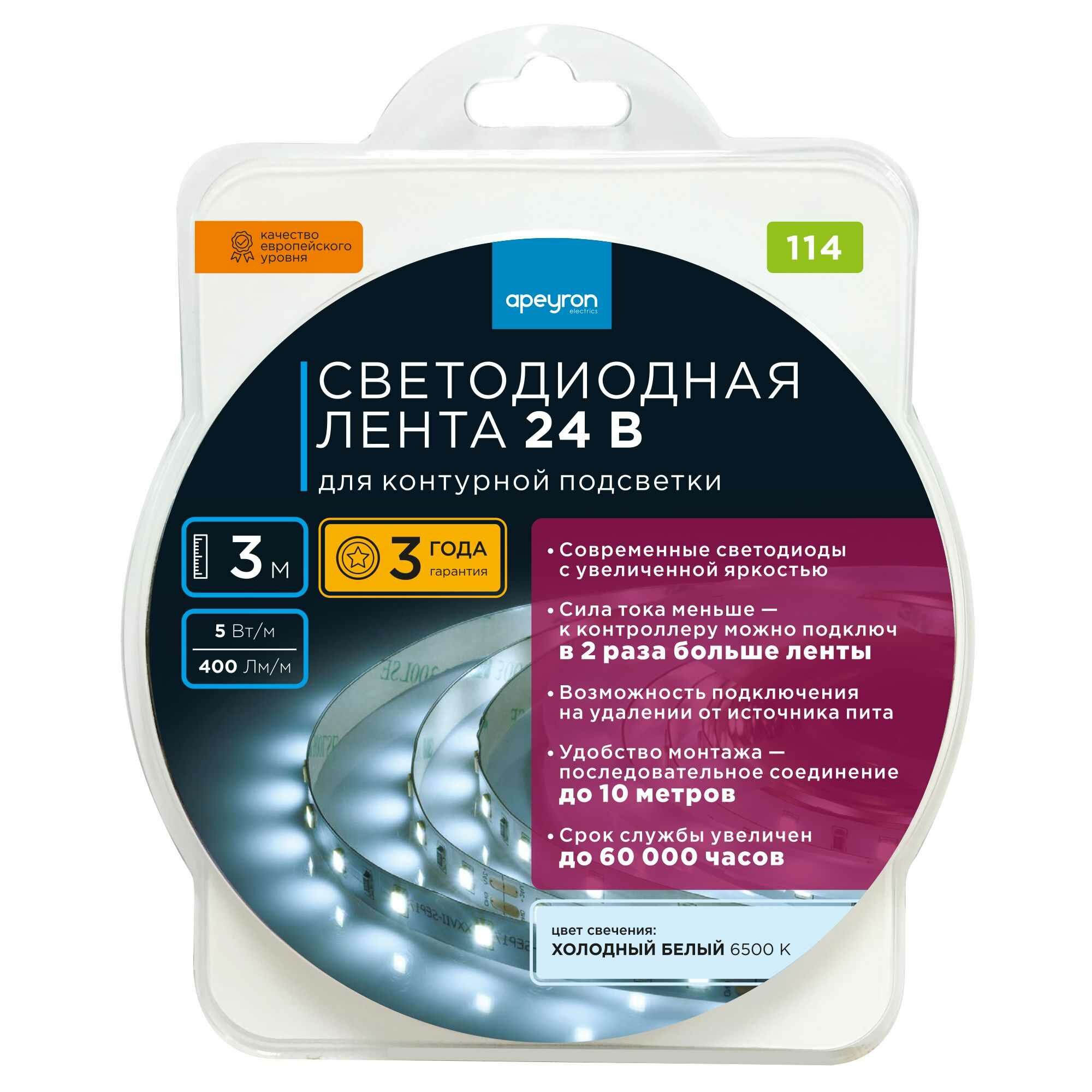 Лента светодиодная 12В Apeyron, 9,6 Вт/м, smd 3528, 120 д/м, IP20, 600 Лм/м, ТБ (5м)