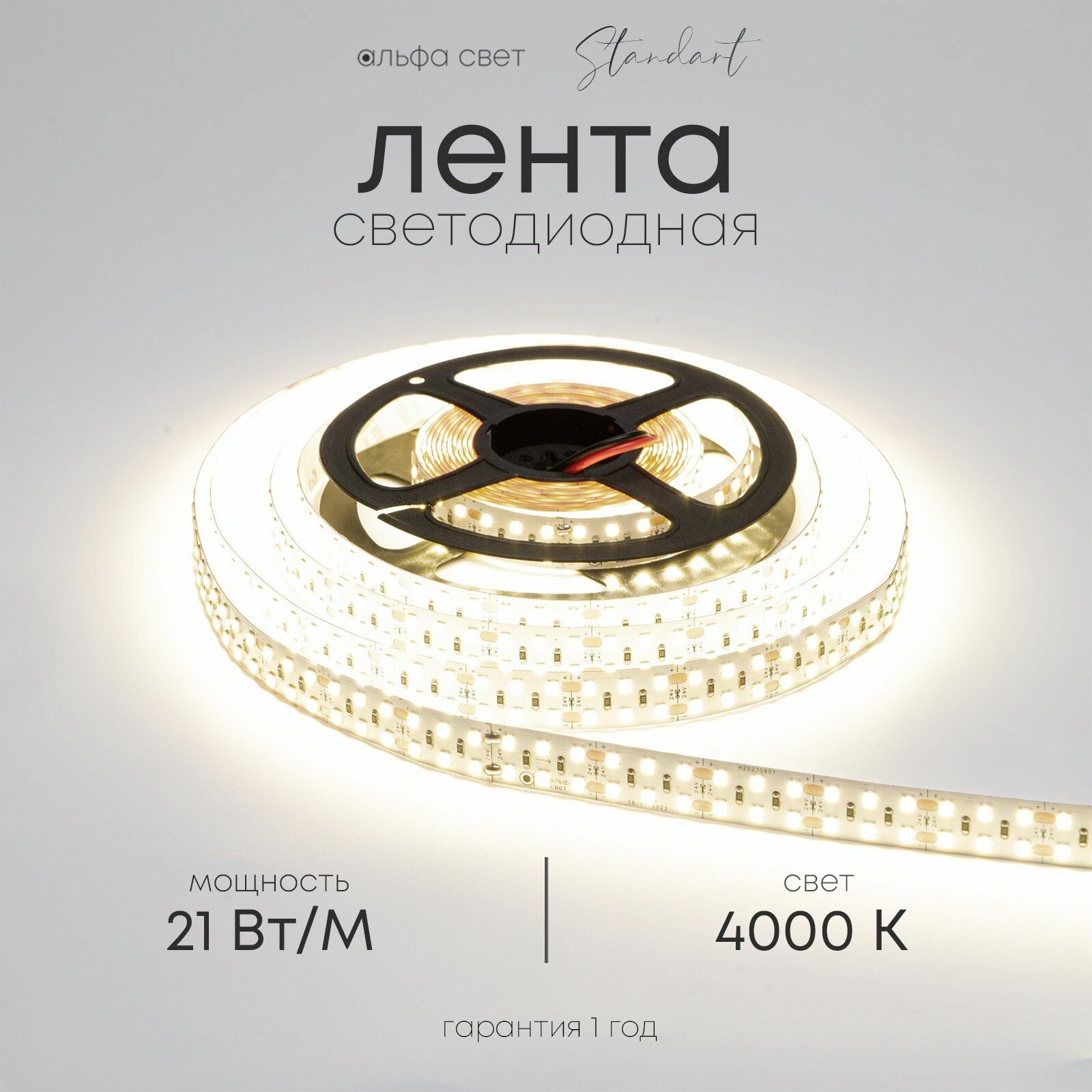 Светодиодная лента DUAL 21Вт, 24В, 4000К (дневной свет), 2100 лм/м, IP20, двухрядная, 5 метров, Альфа Свет информация:
