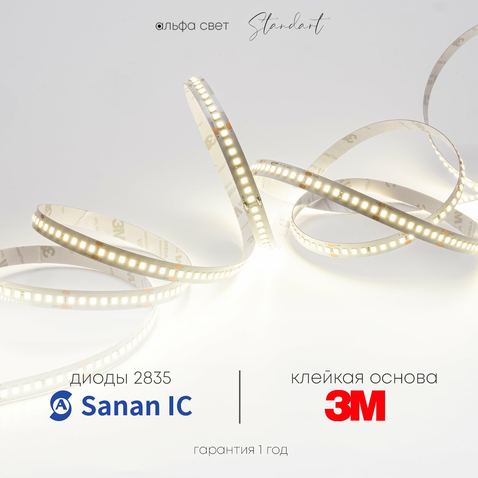 Светодиодная лента 19.2Вт, 24В, 4000К (дневной свет), 2300 лм/м, IP20, 5 метров, Альфа Свет информация: