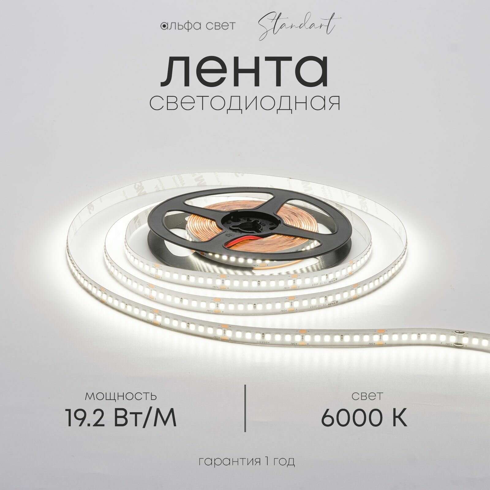 Светодиодная лента 19.2Вт, 24В, 6000К (холодный свет), 2300 лм/м, IP20, 5 метров, Альфа Свет информация: