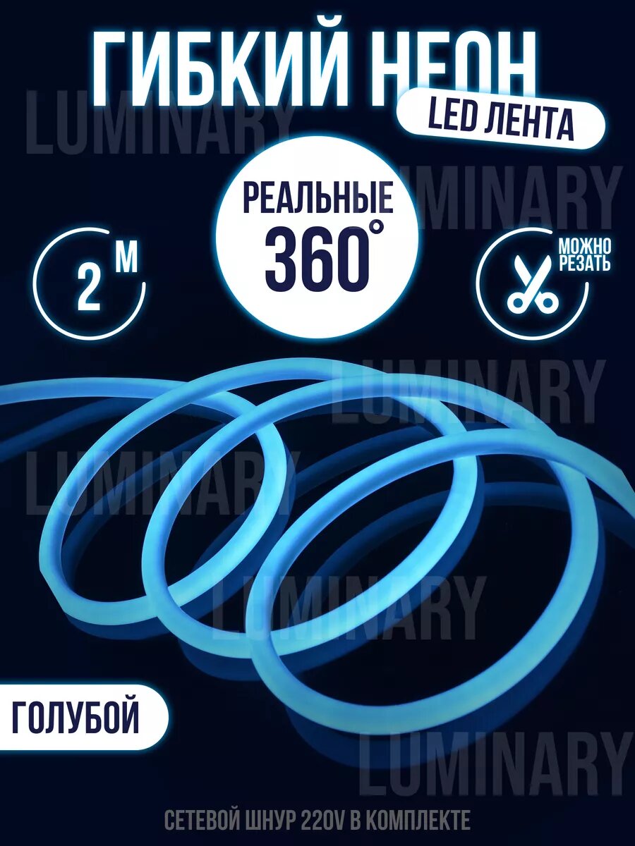 Гибкий неон 360 ° светодиодная лента 10 метров, подсветка, LED лента, цвет синий 2 905 ₽