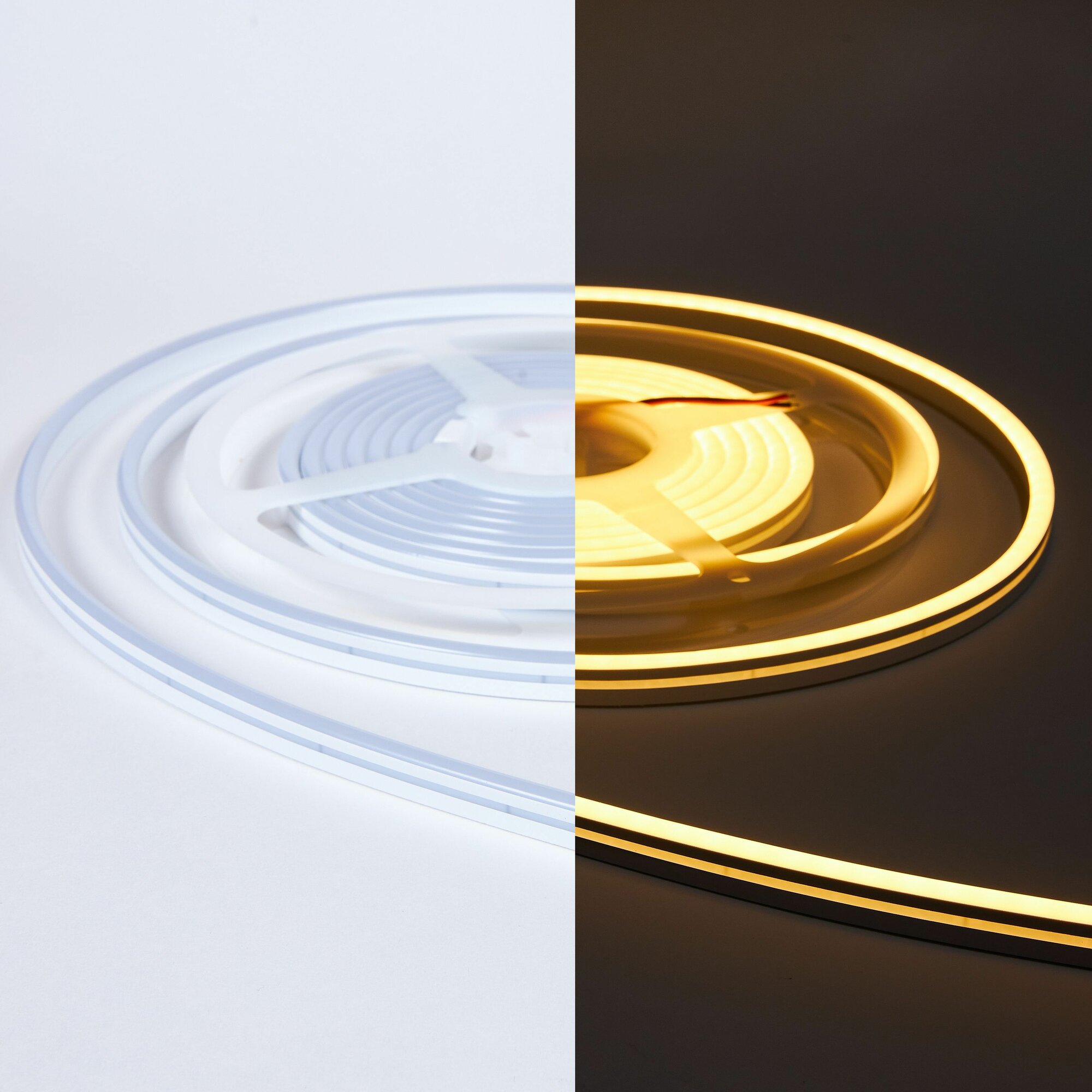 10 цен на Светодиодная лента (комплект) гибкая неоновая LUX 24V "Eleganz" 7 Вт, 2835, 120 LED, IP65 Теплый белый свет. Лента 15м (3шт. по 5 метров)