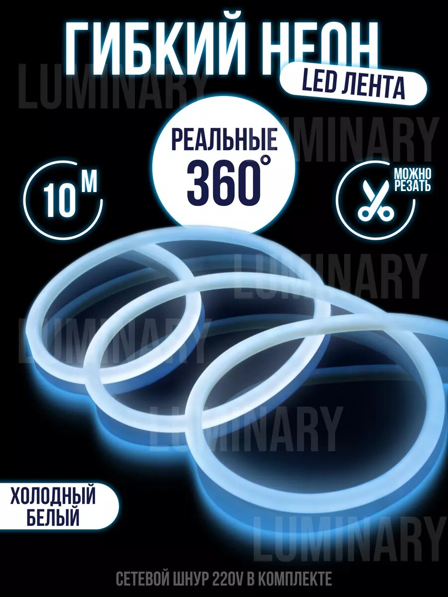 Гибкий неон 360 ° светодиодная лента 10 метров, подсветка, LED лента, цвет белый информация: