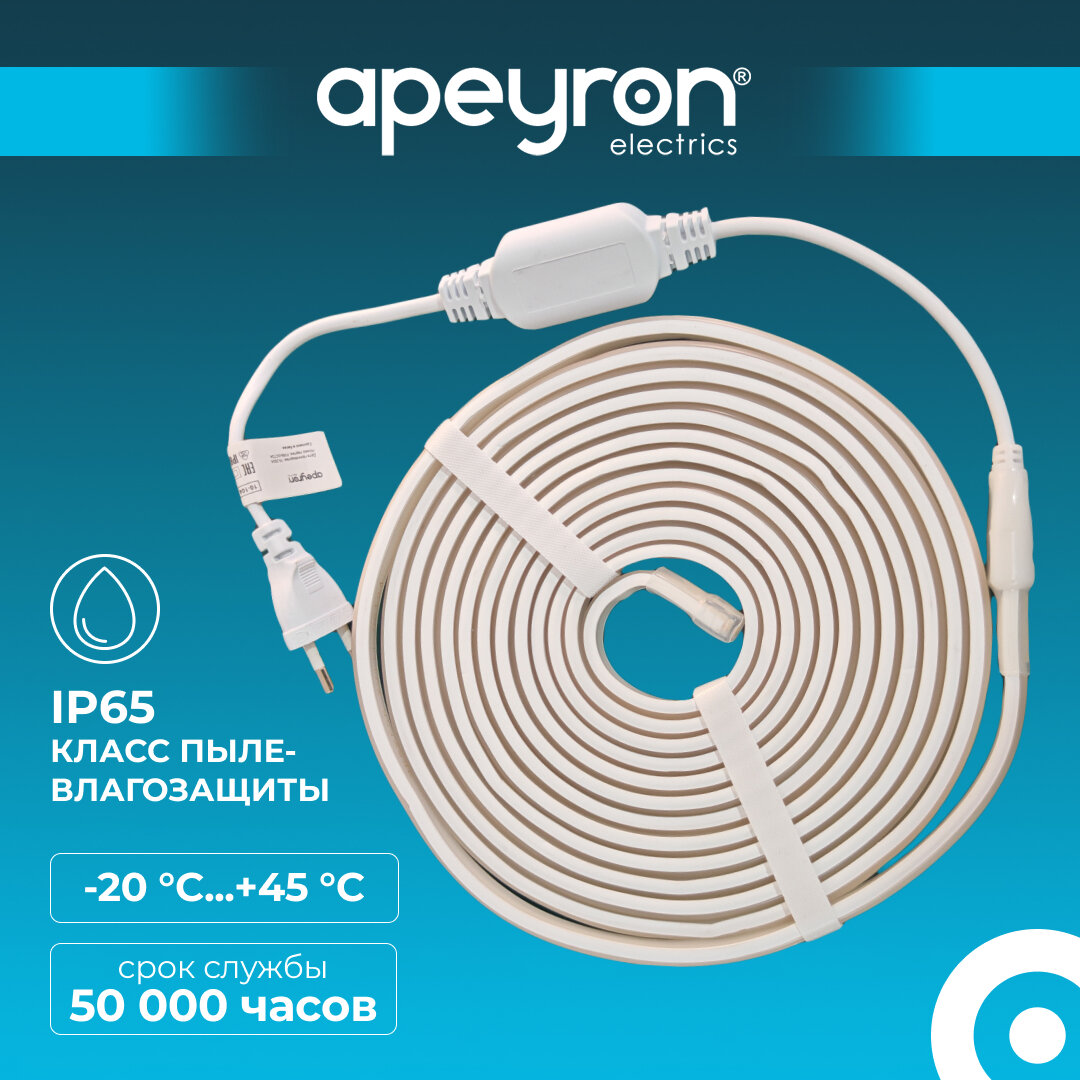 Отзывы на Комплект светодиодной ленты Apeyron 10-107 неон COB с аксессуарами, 220В, цвет свечения голубой, 11Вт/м, IP65, длина 5м