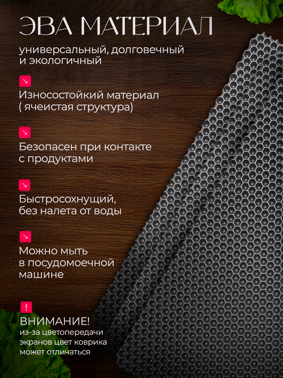Эва коврик для сушки посуды, 20х50см , черные соты / Для кухни / Eva, Ева 182 ₽
