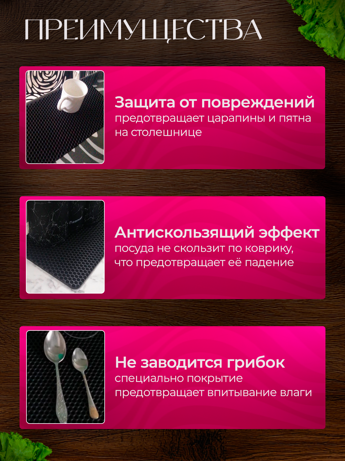 Набор Эва ковриков для сушки посуды из трех штук, 20х40см , черные соты / Для кухни / Eva, Ева 198 ₽