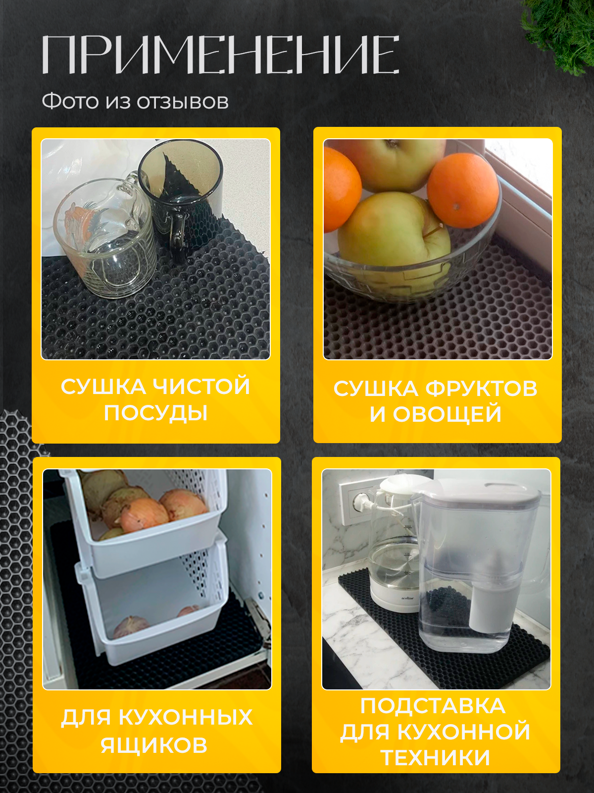 Эва коврик для сушки посуды, 20х40см , черные соты / Для кухни / Eva, Ева 246 ₽