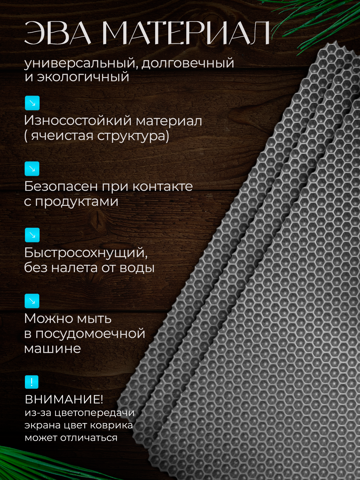Эва коврик для сушки посуды, 20х50см , серые соты / Для кухни / Eva, Ева 182 ₽