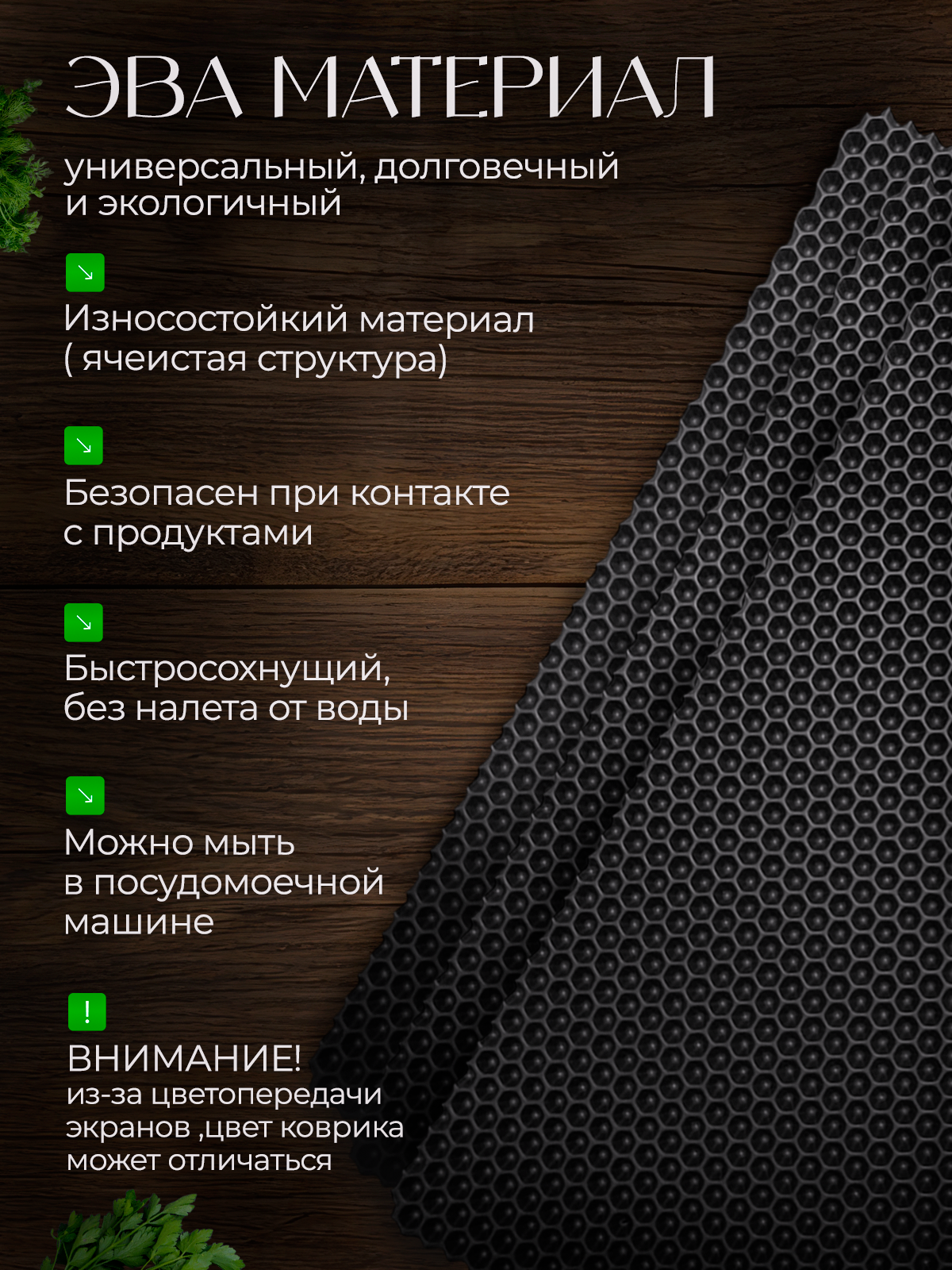 Отзывы на Эва коврик для сушки посуды, 20х50см , черные соты / Для кухни / Eva, Ева