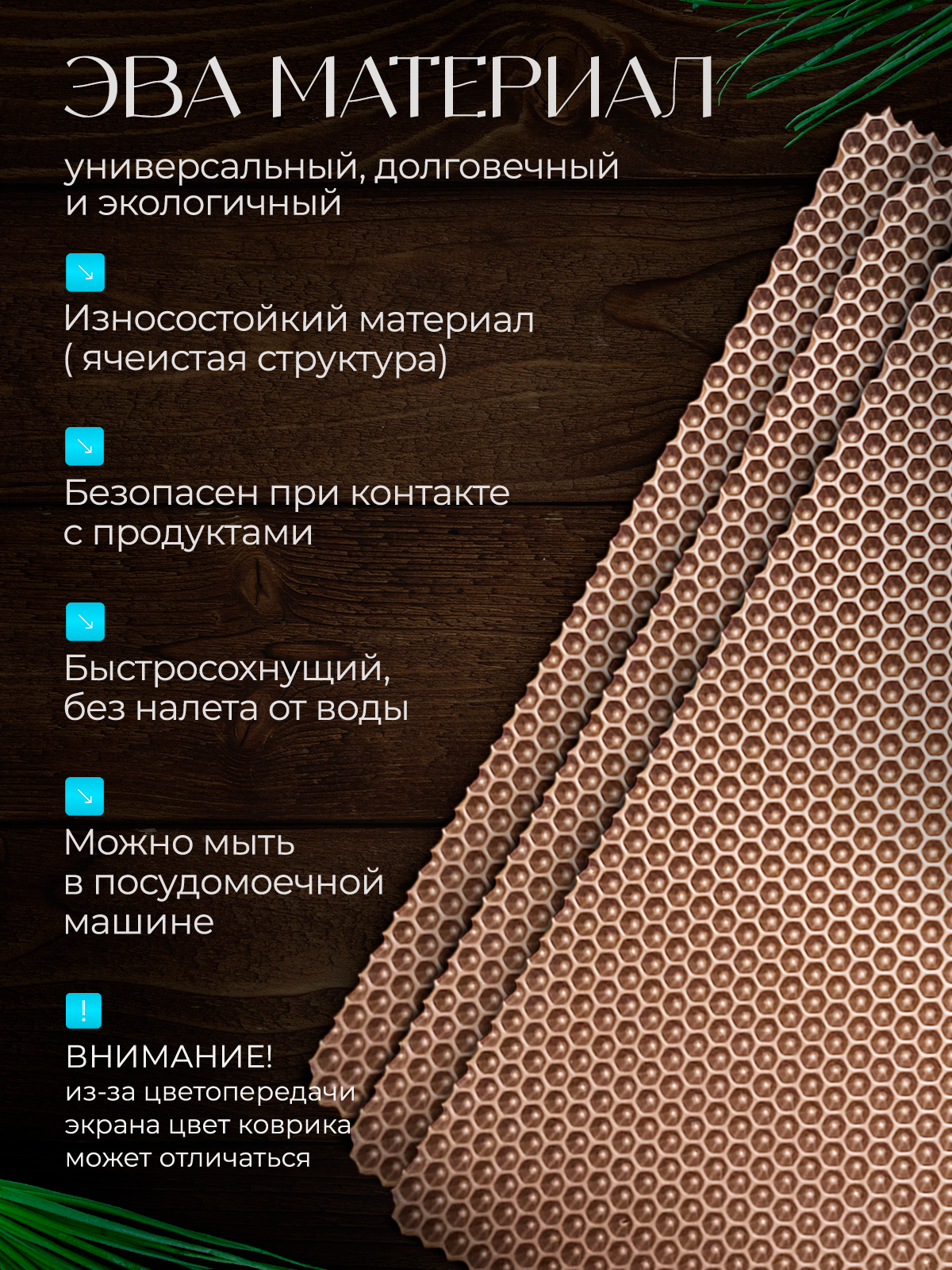 Эва коврик для сушки посуды, 20х50см , коричневые соты / Для кухни / Eva, Ева 246 ₽