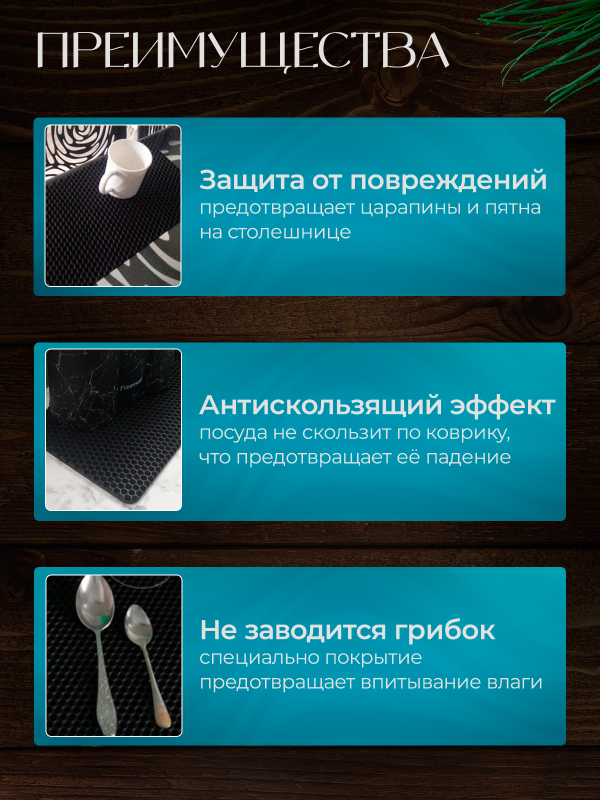 Набор Эва ковриков для сушки посуды из трех штук, 20х40см , черные соты / Для кухни / Eva, Ева 198 ₽
