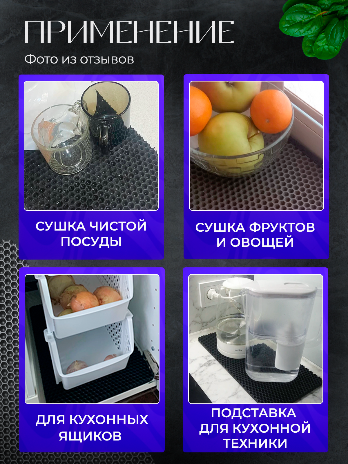 Отзывы на Эва коврик для сушки посуды, 20х40см , серые соты / Для кухни / Eva, Ева