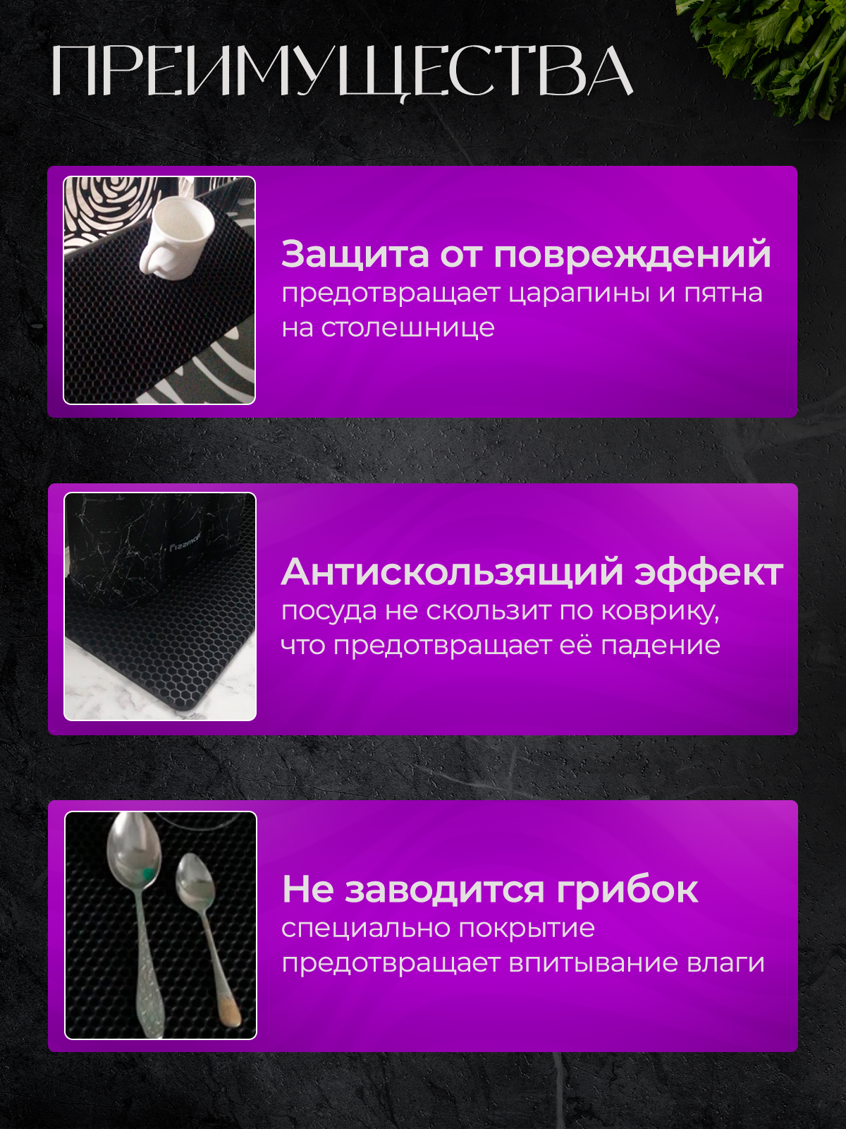 Эва коврик для сушки посуды, 20х50см , черные соты / Для кухни / Eva, Ева 182 ₽