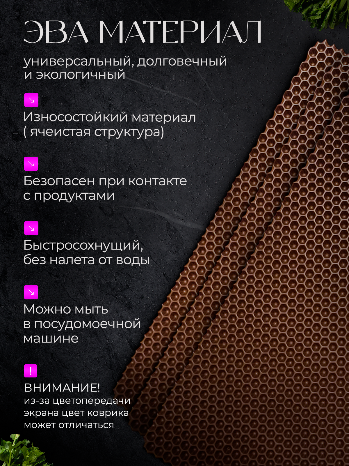 Набор Эва ковриков для сушки посуды из трех штук, 20х50см , коричневые соты / Для кухни / Eva, Ева 207 ₽