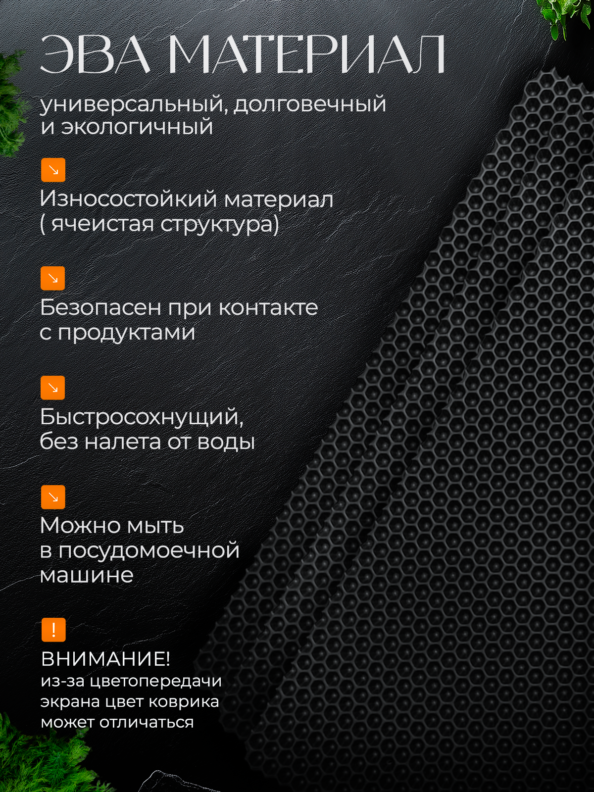 Барный коврик 20х40 см для сушки посуды 3 шт, черные соты информация: