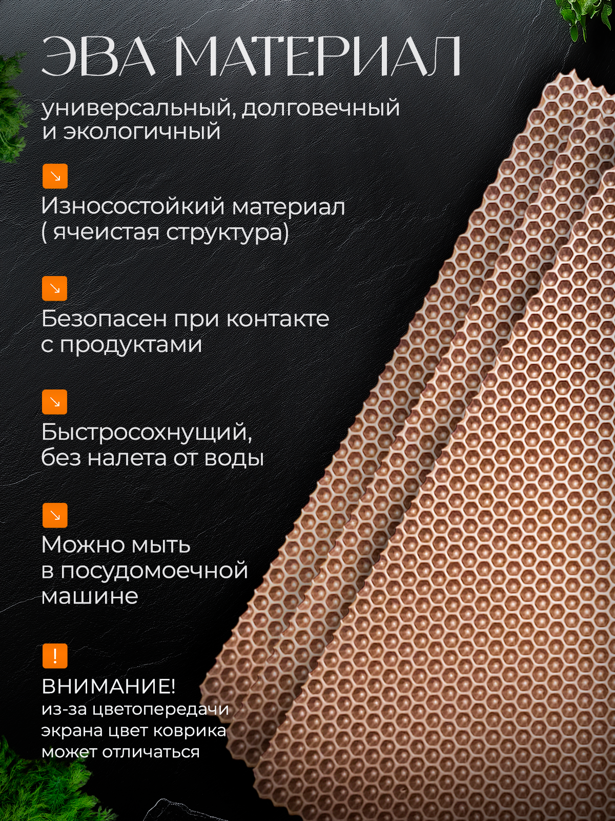 Барный коврик 20х40 см для сушки посуды 3 шт, коричневые соты 251 ₽