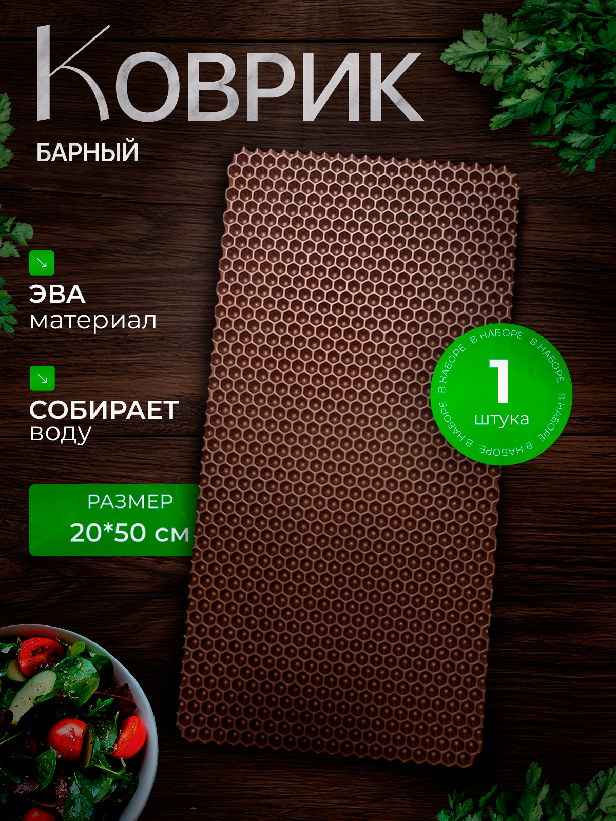 Барный коврик для сушки посуды 20х50 см , коричневые соты информация: