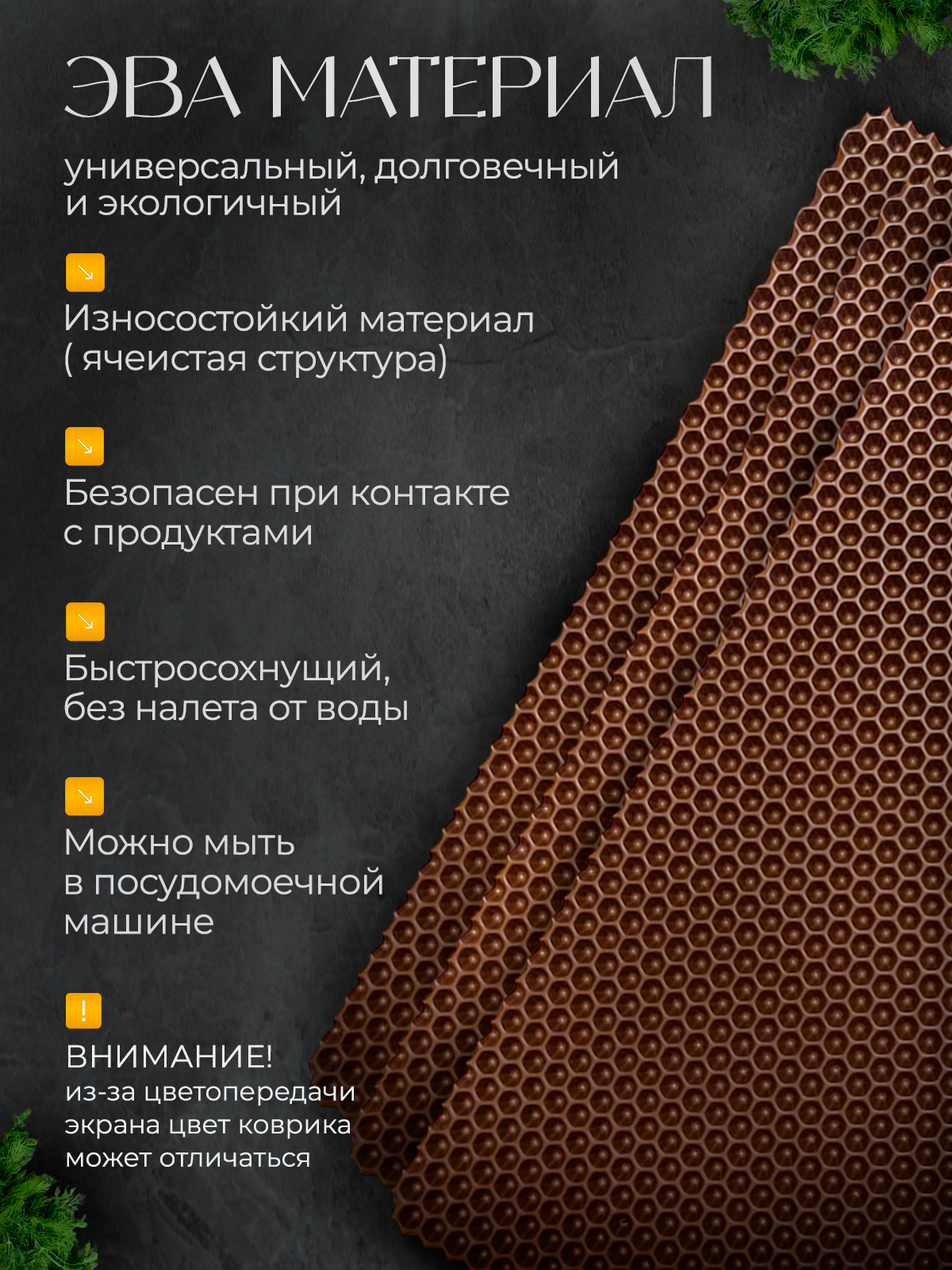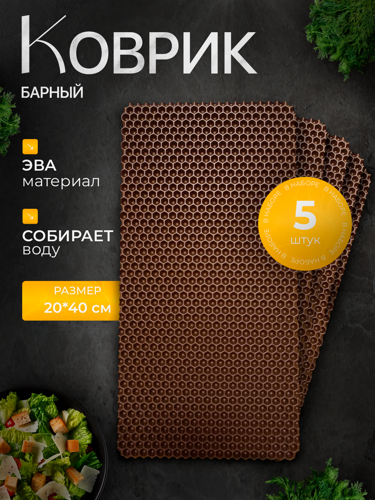 Барный коврик 20х40 см для сушки посуды 5 шт, коричневые соты информация: