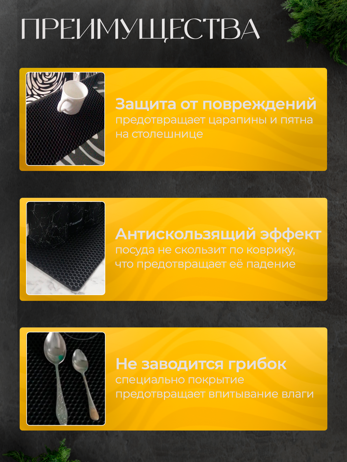 Барный коврик 20х40 см для сушки посуды 3 шт, черные соты 251 ₽
