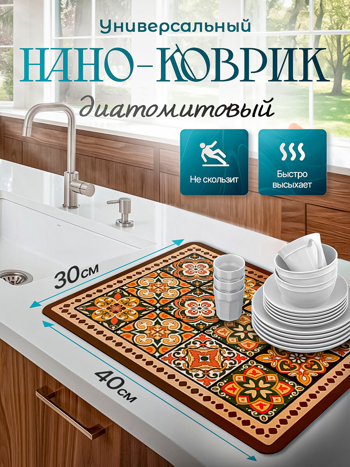 Нано-коврик для сушки посуды впитывающий 30*40см информация: