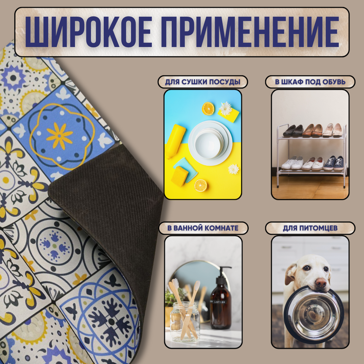 10 цен на Коврик для сушки посуды, влаговпитывающий нано-коврик 50х40см, мозаика.