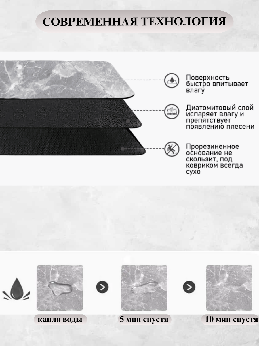 10 цен на Коврик для сушки посуды, влаговпитывающий нано-коврик, 58х38, светлый мрамор