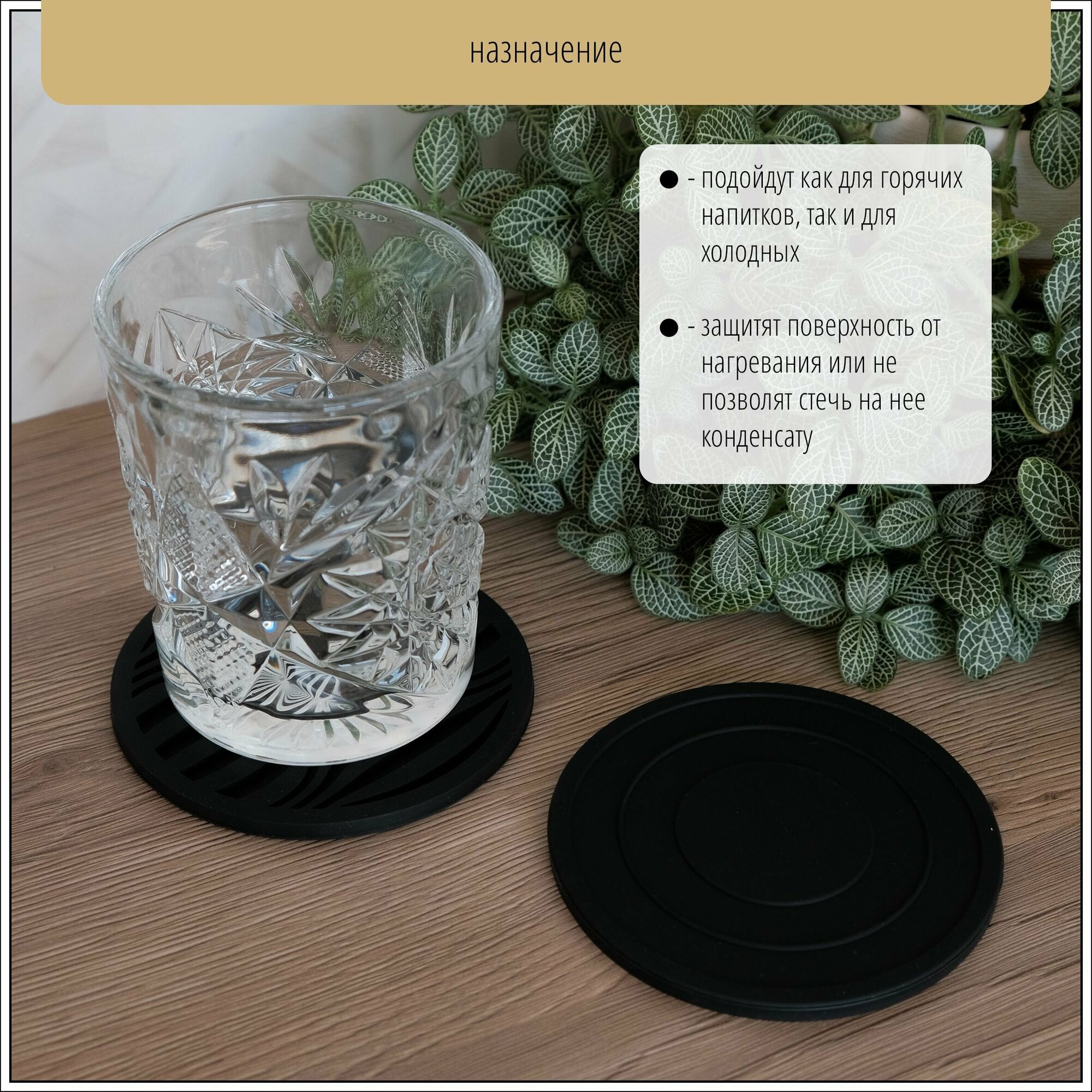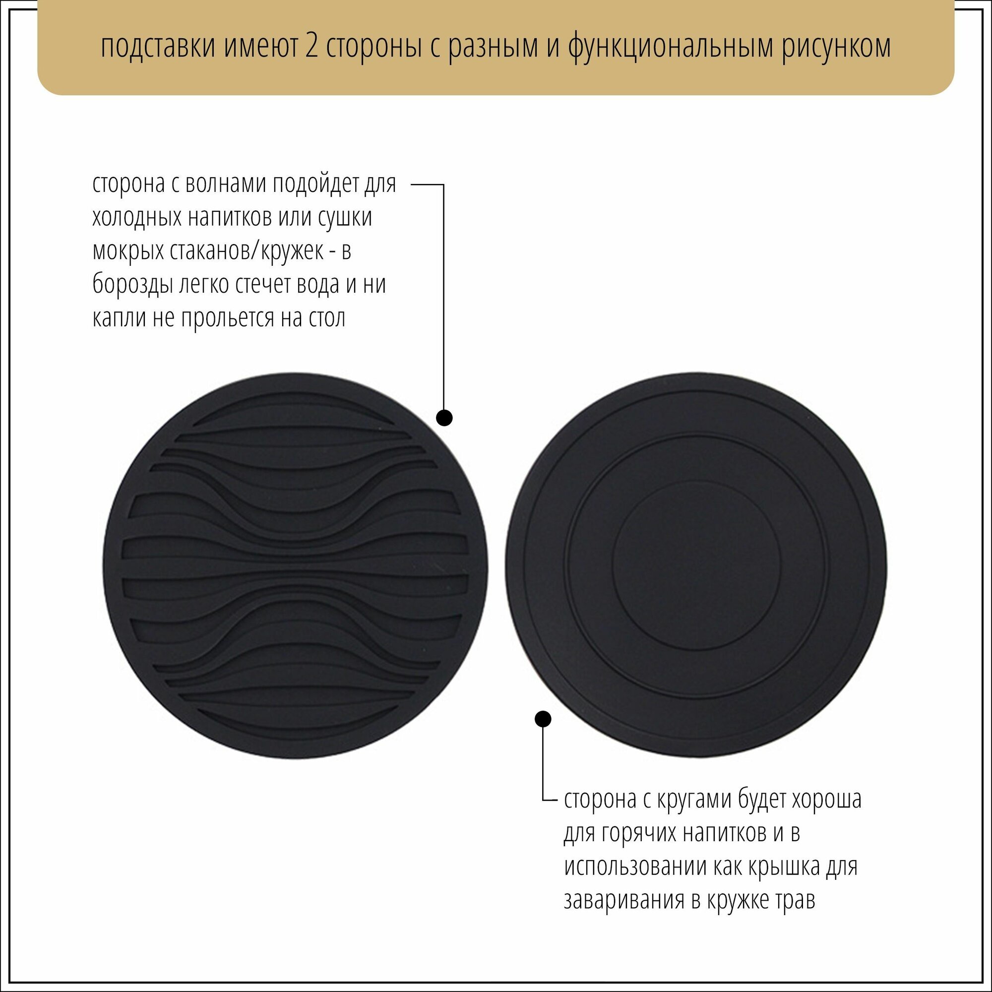 Силиконовые подставки под кружку, стакан. Подставки под горячее. Черные, набор 2 шт. информация: