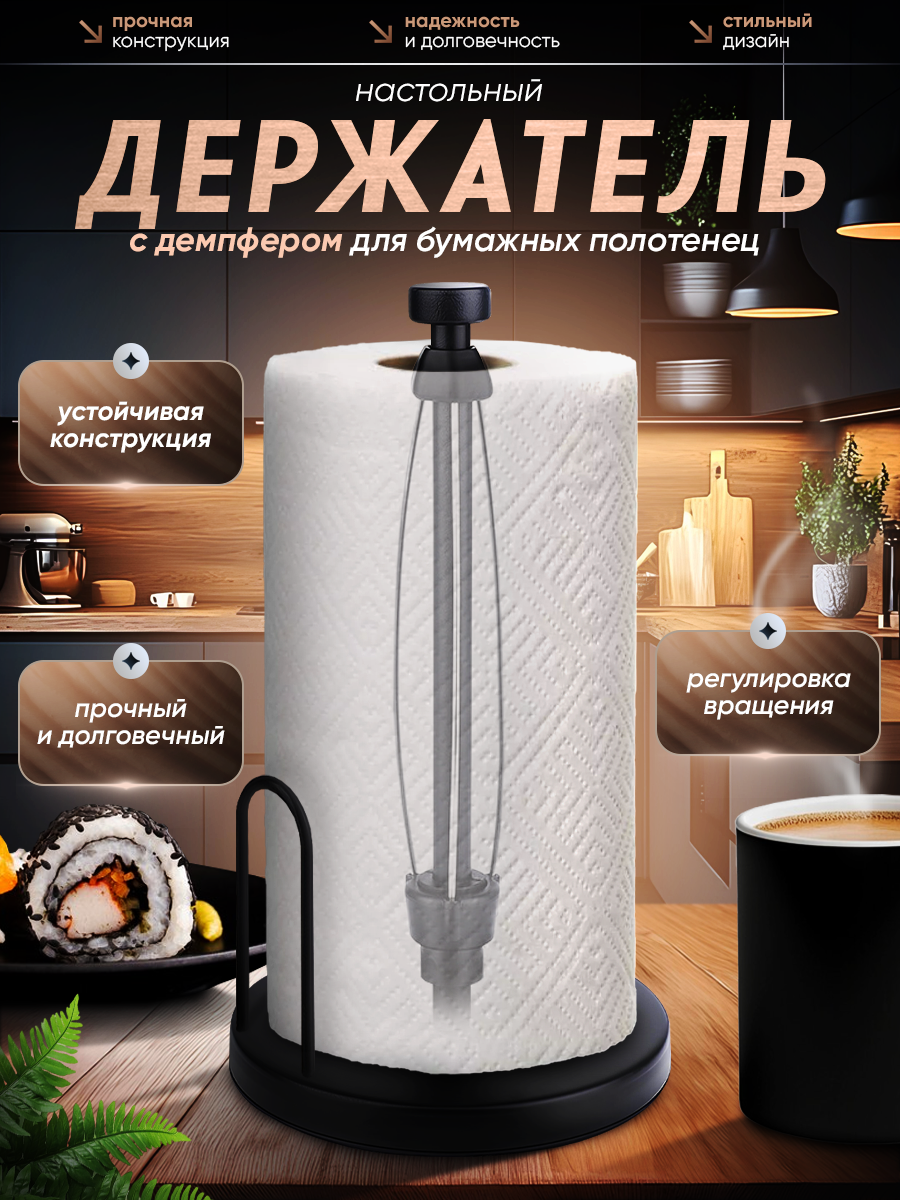Держатель для бумажных полотенец с демпфером настольный чёрный информация: