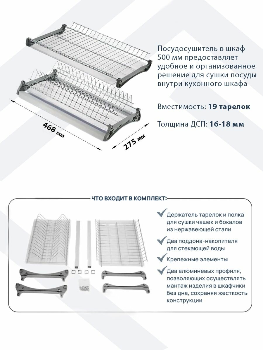 Посудосушитель двухуровневый Variant-3 в кухонный шкаф 500мм хром информация: